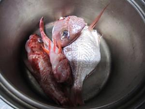 頭は別にして出汁を取り、鯛の土鍋ごはんに。