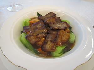 写真は、今回はアラカルトからで、「黒豚チャーシューと揚げ豆腐」に
