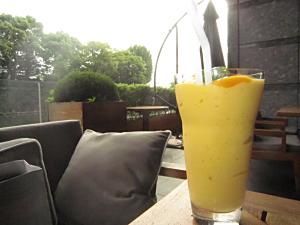 ミルフィーユ越しの景色も最高。バナナとマンゴーのスムージーと頂きました。