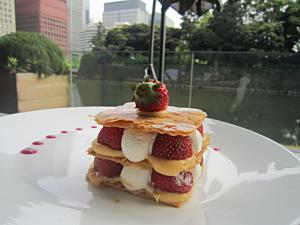 和田倉濠に面したテラスからは、江戸城の石垣の向こうに立ち並ぶ、